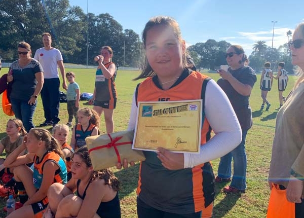While all the players were on fire, special mention to Amhy, for playing out of her skin for the whole game, following the ball relentlessly and with some great marks and tackles. Abbie was involved in everything in both attack and defence. Charli was another new player who chased the ball all game and never stopped.  Elodie never gave up, made some terrific disposals, and took the mark of the season so far. Ivy E, who as mentioned above, defended non stop. She lay on the field in exhaustion at 1/2 time, then pulled herself up and did it all again for the rest of the match.